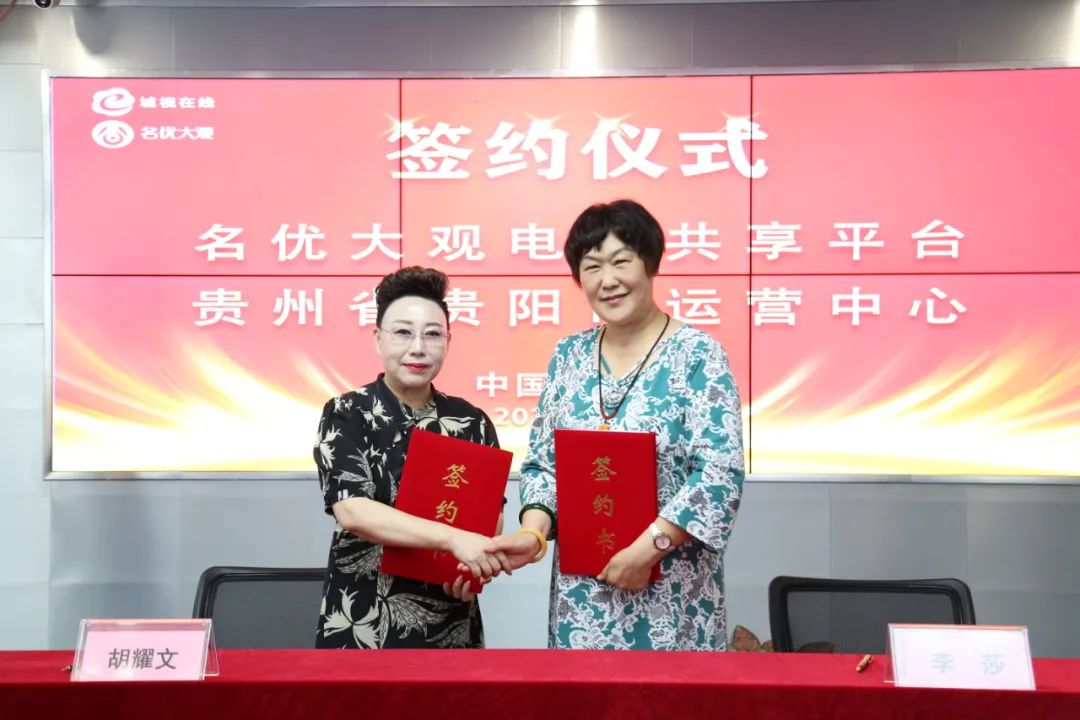 城视在线董事长胡耀文(左)与贵州省贵阳市运营中心负责人李莎(右)