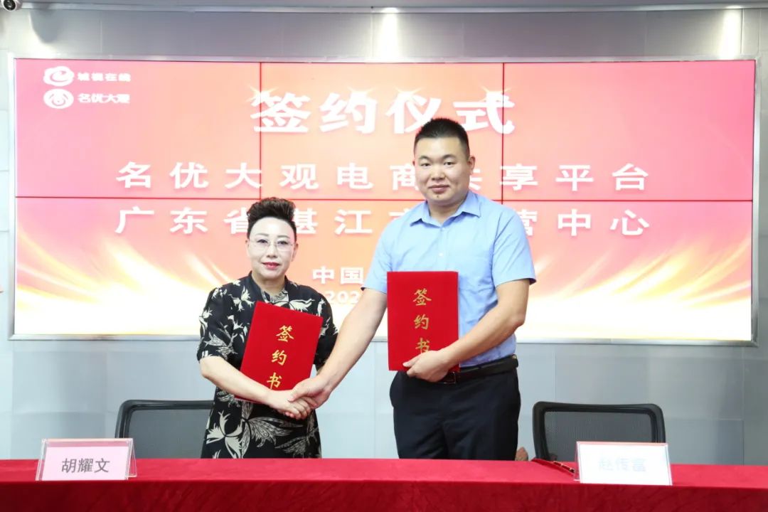 2021年6月18日上午,城视在线旗下名优大观电商共享平台与贵州省贵阳市运营中心、广东省湛江市运营中心、广东省梅州市运营中心、广东省河源市运营中心、云南省红河州运营中心、云南省昆明市运营中心,在珠海报业新媒体大厦举行签约仪式。